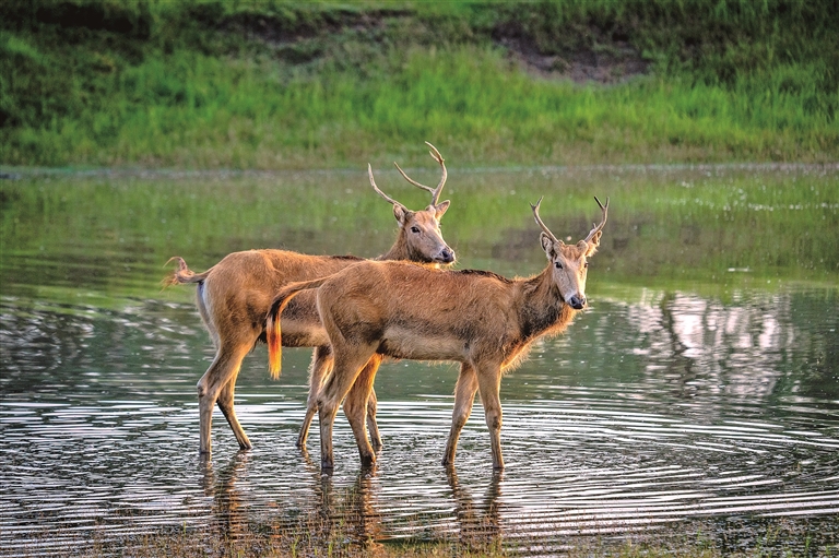 江苏盐城黄海湿地麋鹿。光明图片/视觉中国