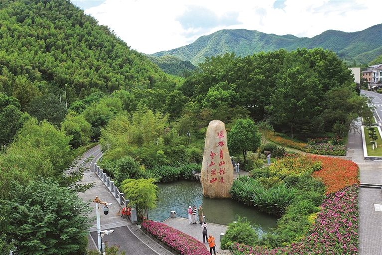 浙江安吉的“绿水青山就是金山银山”石碑。新华社发
